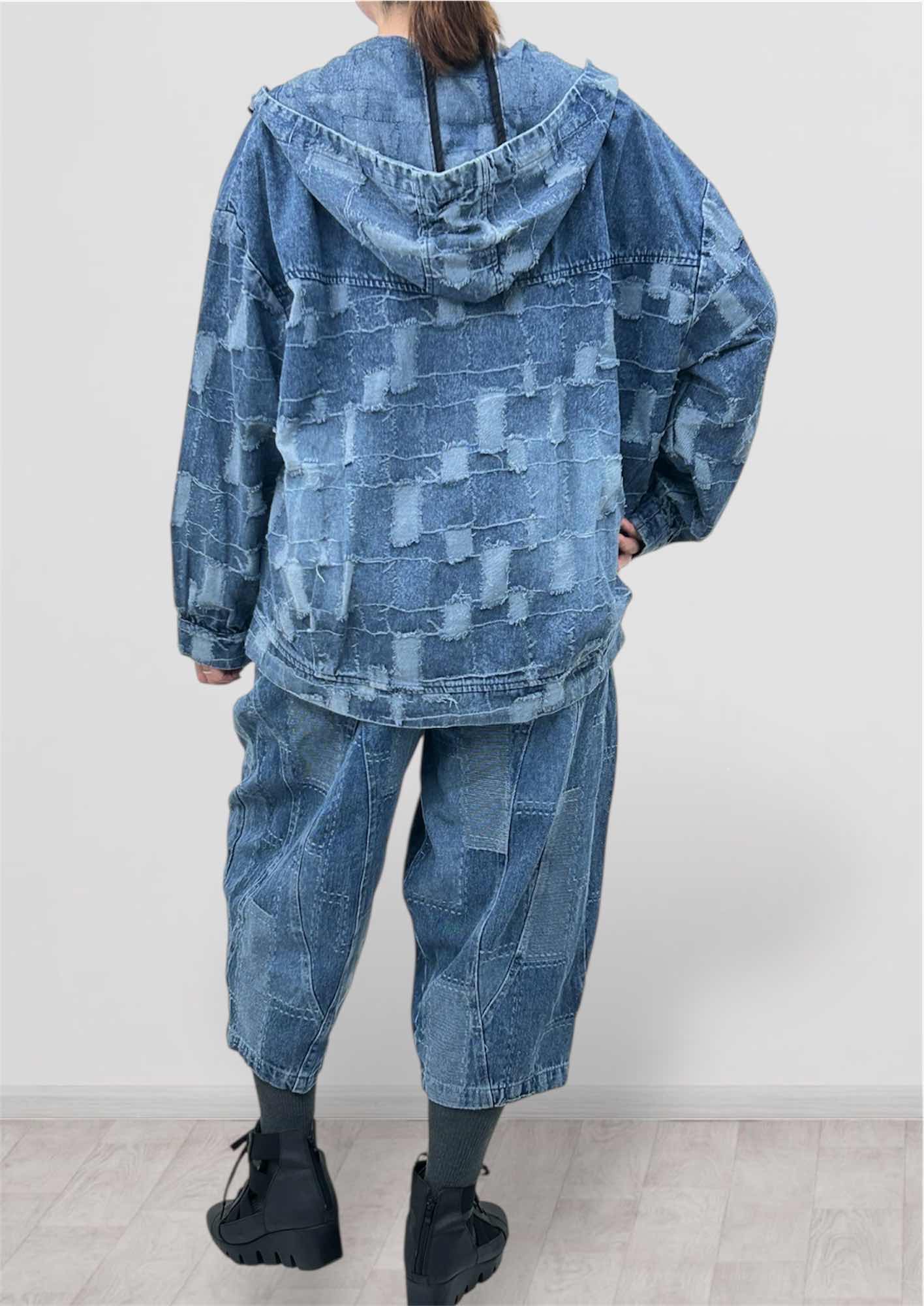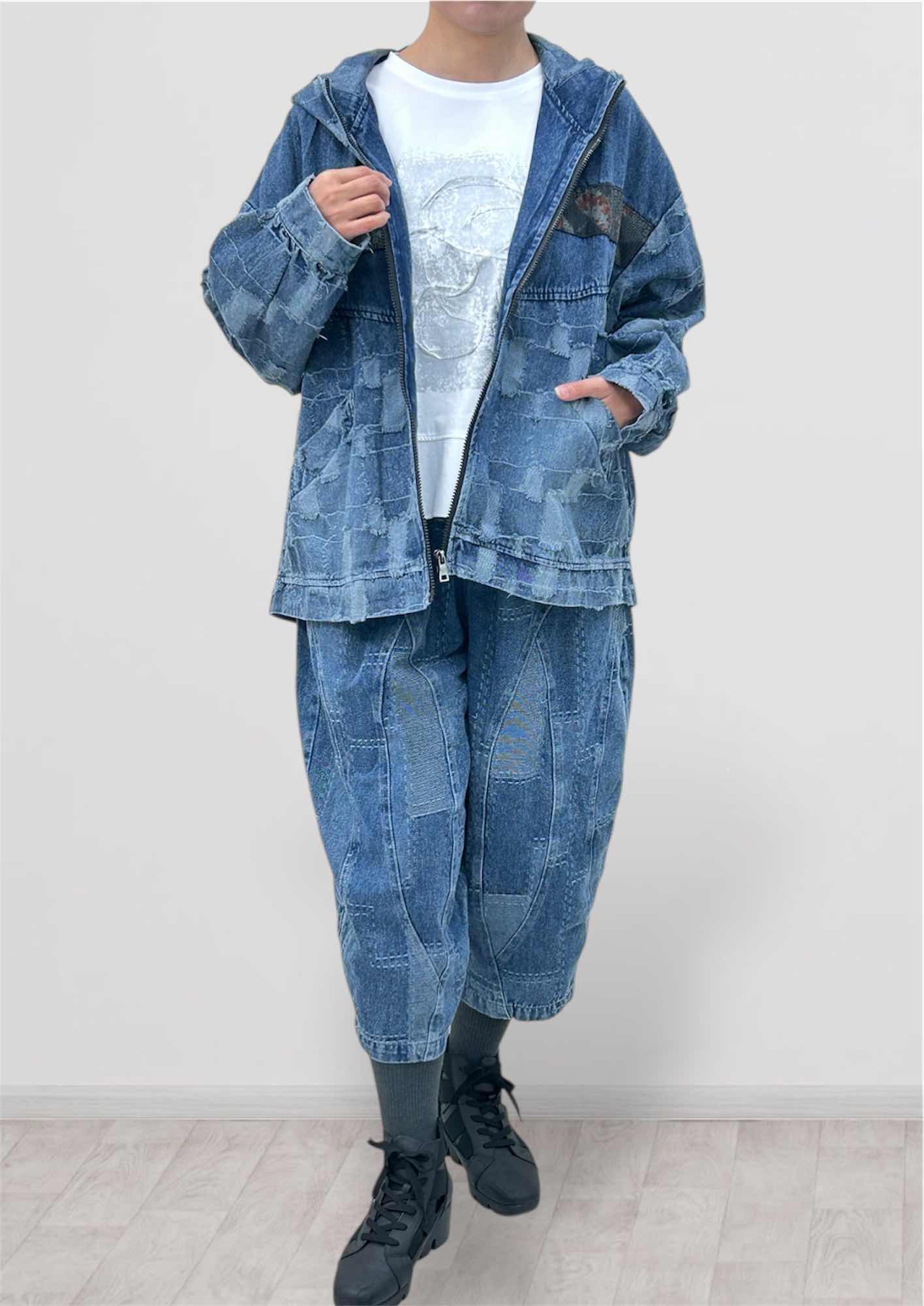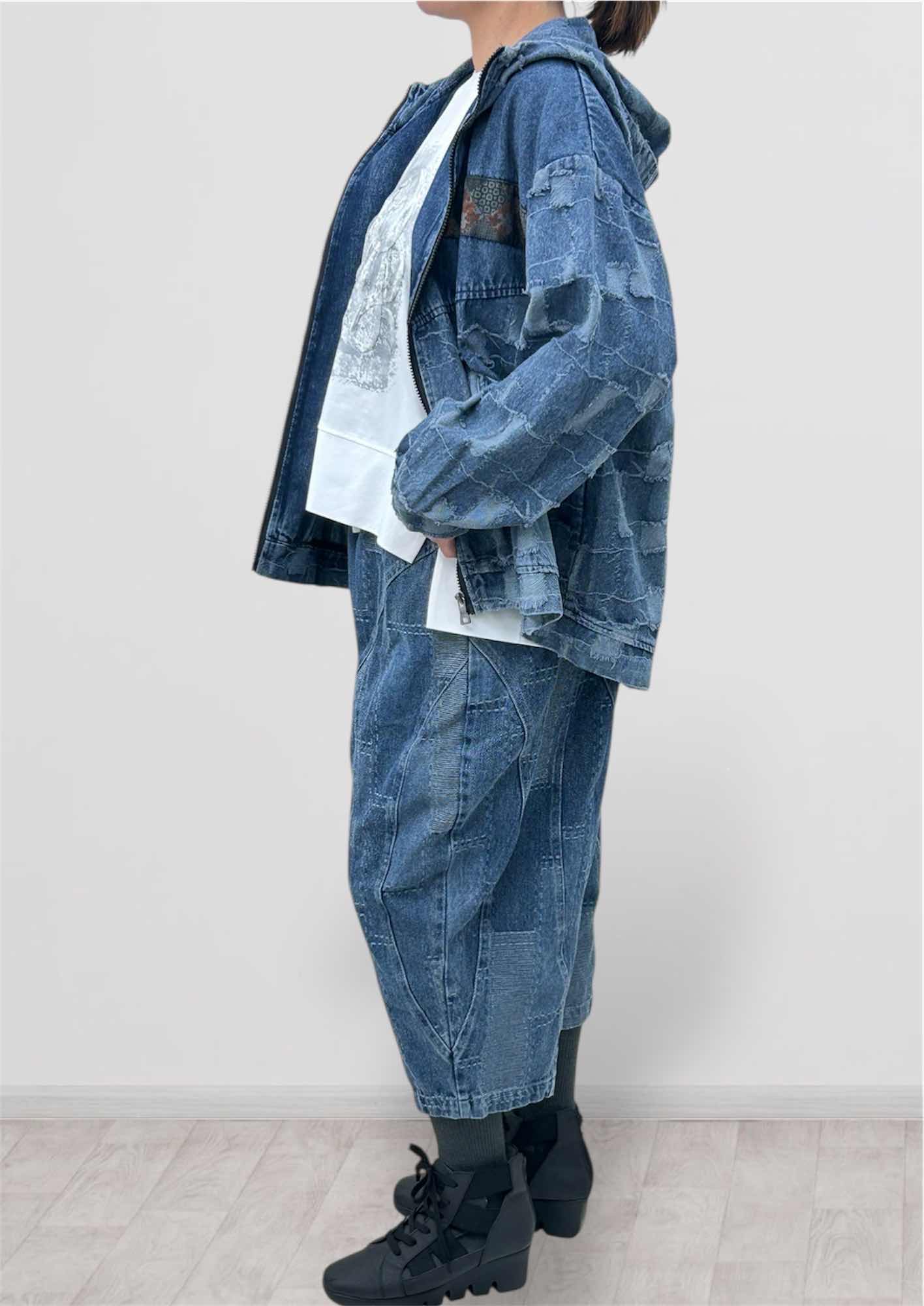 こだわりのグリッド加工が施されたデニムジャケットを主役にした、春のセットアップスタイル。